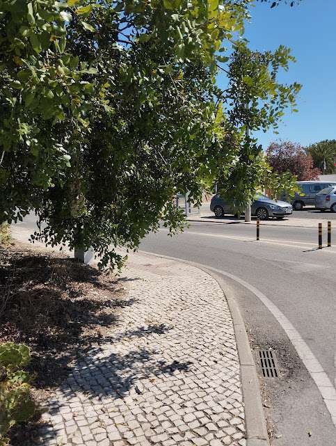As árvores existentes junto ao passeio — uma alfarrobeira e um pinheiro — apresentam crescimento descontrolado dos seus ramos, o que tem causado sérias dificuldades à circulação de peões. A vegetação invade o espaço pedonal, obrigando os transeuntes a deslocarem-se para a faixa de rodagem, colocando em risco a sua segurança. Trata-se de uma zona com elevado tráfego pedonal, o que torna urgente a intervenção para garantir condições adequadas de passagem.