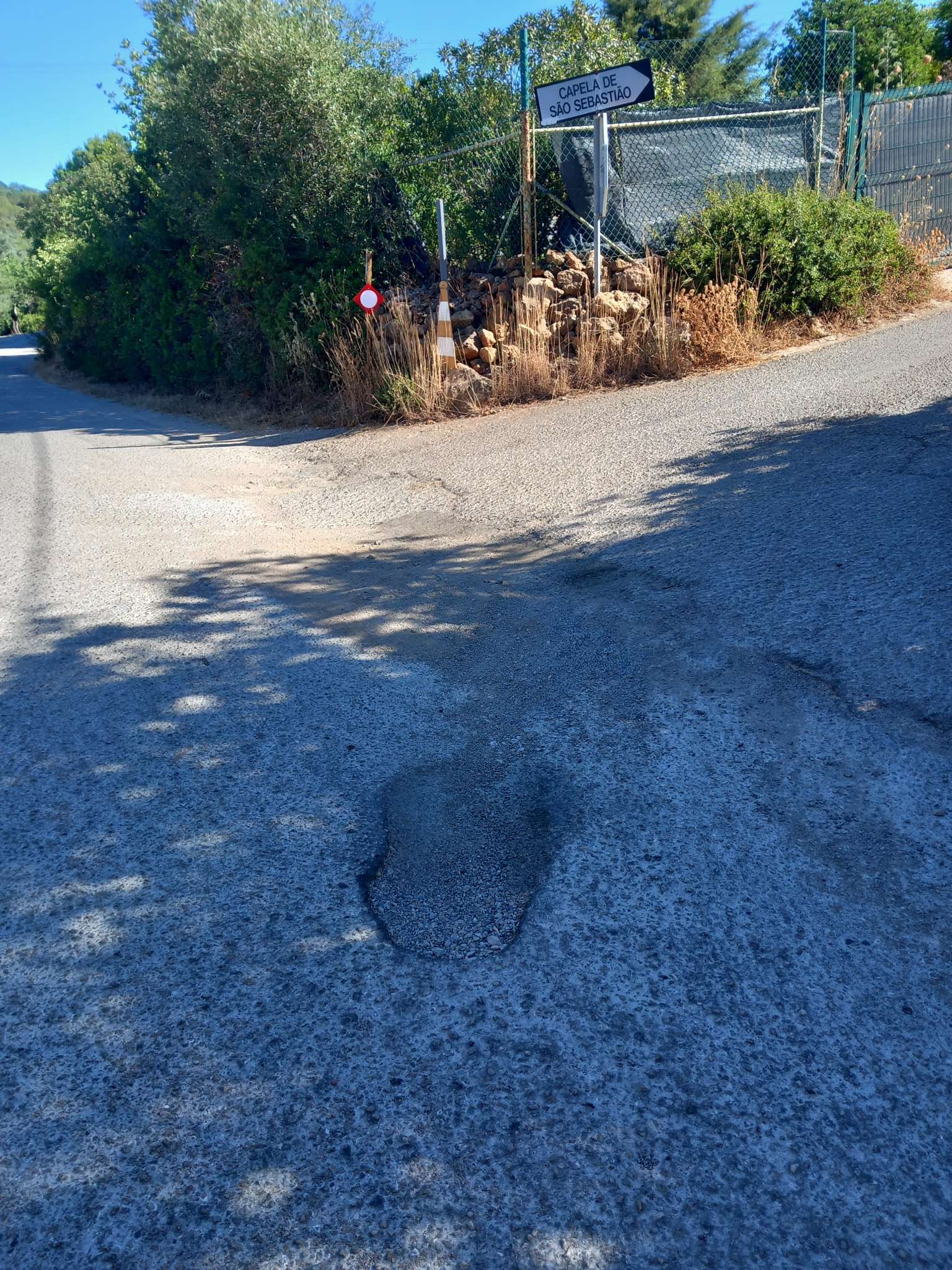 Buraco no alcatrão que liga a EN125 ao Laranjeiro e capela S