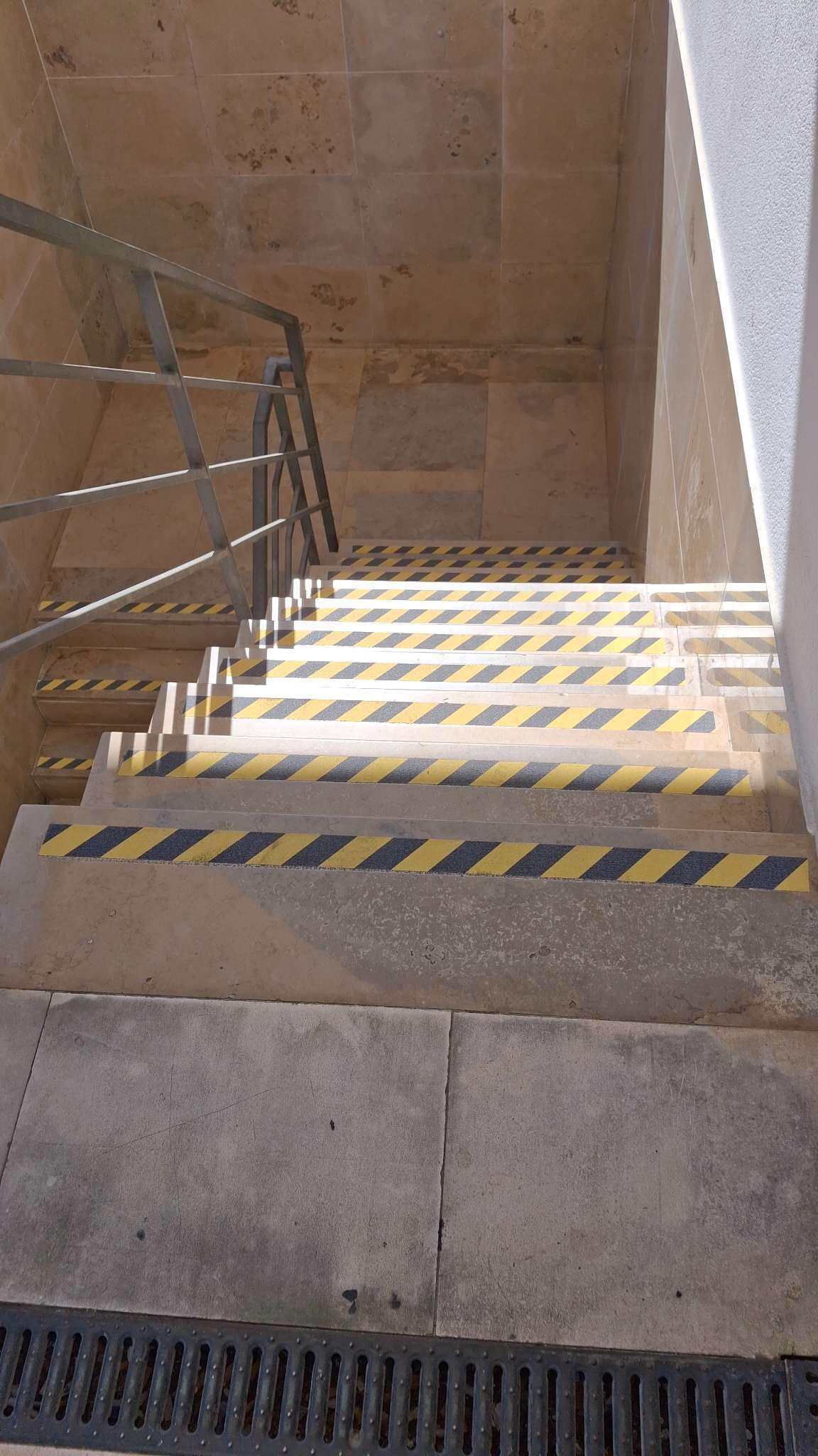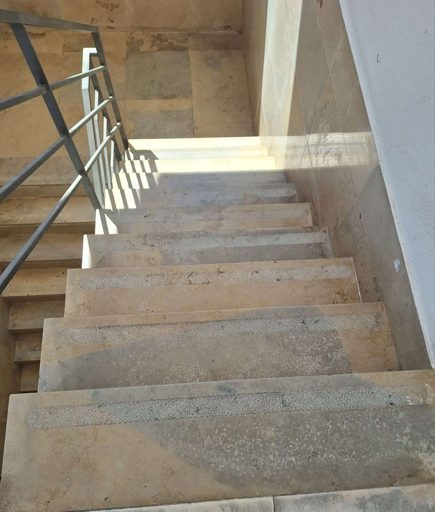 Os degraus necessitam de fita antiderrapante, de forma a evitar quedas. Parque de Estacionamento do Levante