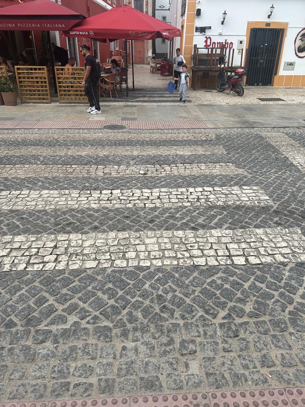Buraco na calçada da passadeira em frente ao bar “Pombo”