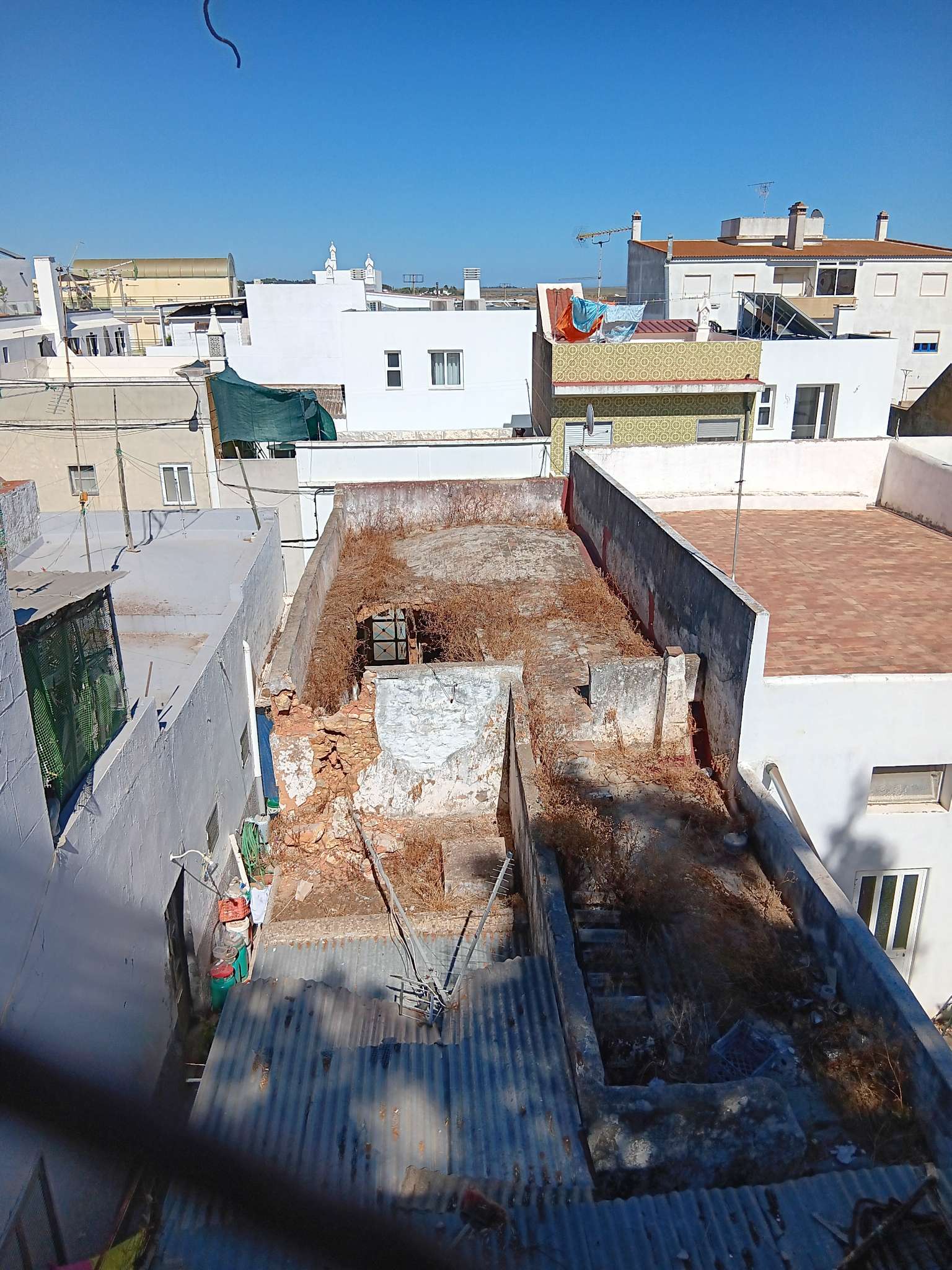 R Prof. Manuel Carlos n 55 8700-039 Fuseta. Terraço desabou.