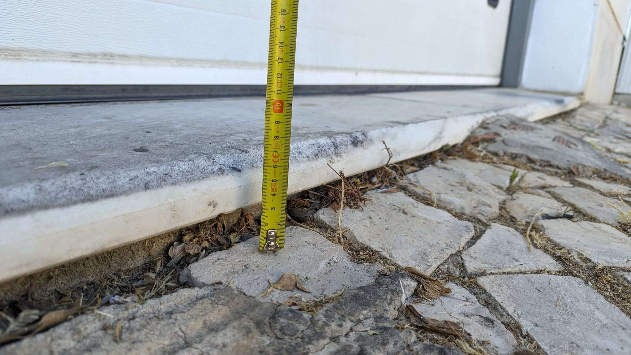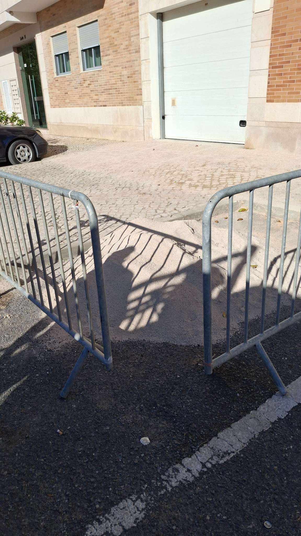 O abatimento da calçada impede as viaturas de entrarem na garagem.