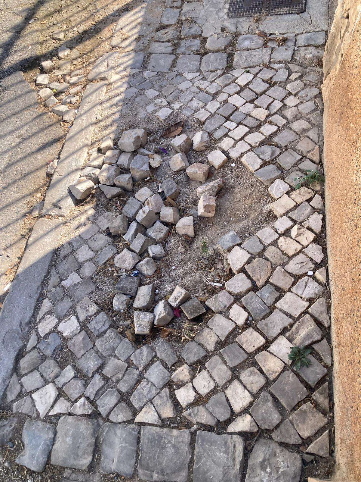 Danificada à mais de 1 ano ! É uma rua muito frequentada por crianças que vão e veem da escola Paula Nogueira. Inclusive tenho vizinhos idosos que já caíram neste mesmo passeio ... Não trata -se de uma pequenina área danificada mas sim toda a largura da passagem pedonal.... nem uma cadeira de rodas passa aqui ... UMA VERGONHA!