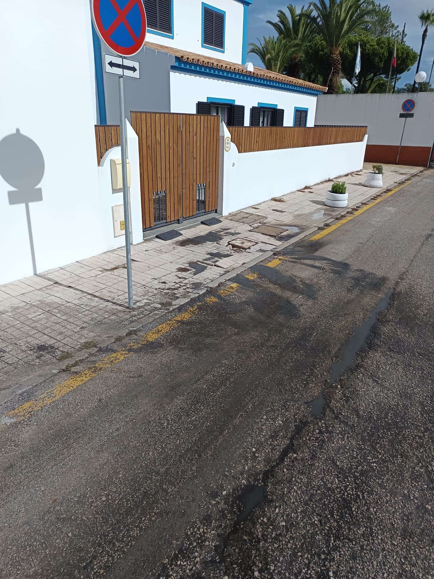 Casa que fica mesmo ao lado da entrada do parque de campismo. Abateu durante a noite. Não consegue entrar com o carro, bate por baixo.