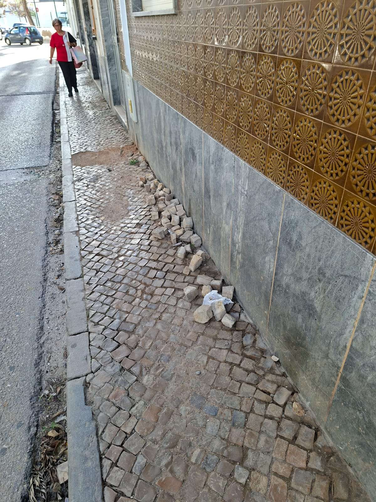Pedras de calçada soltas na Rua da Feira n.º 3A