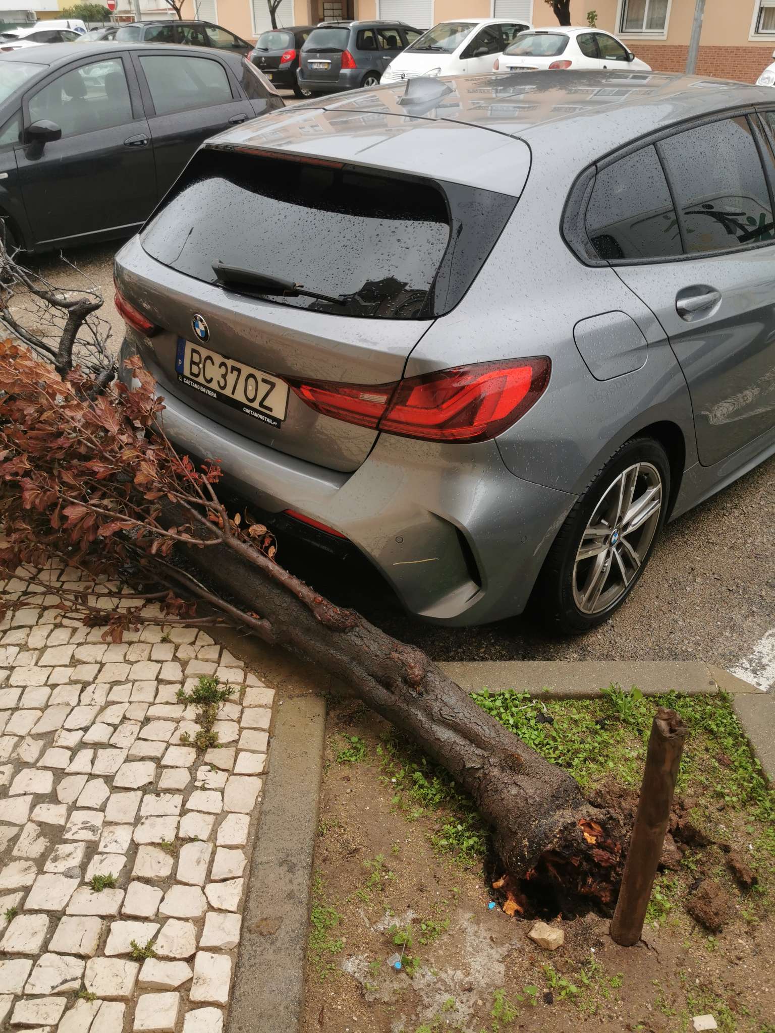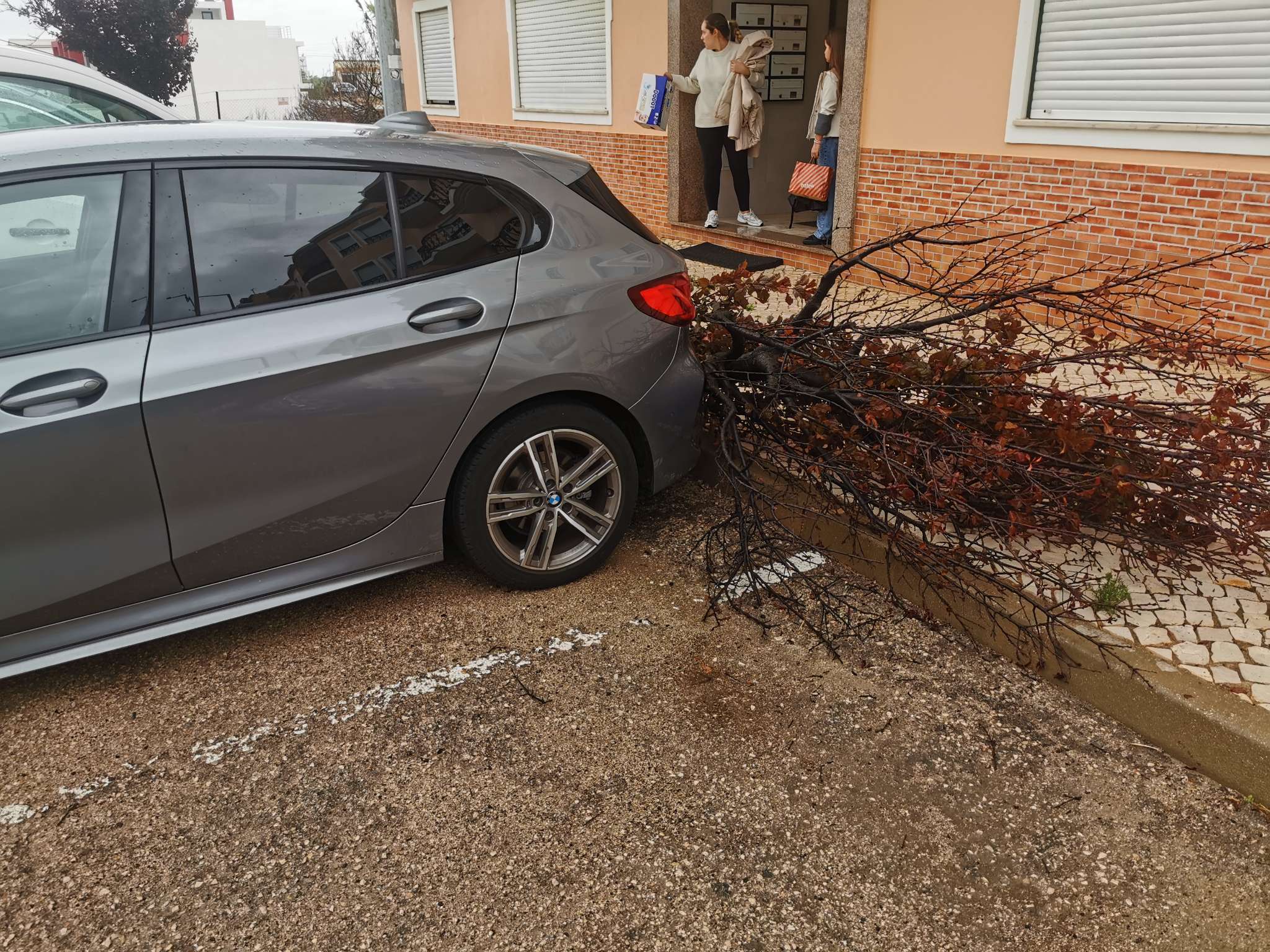 Árvore tombada sobre a minha viatura devido a mau tempo.
