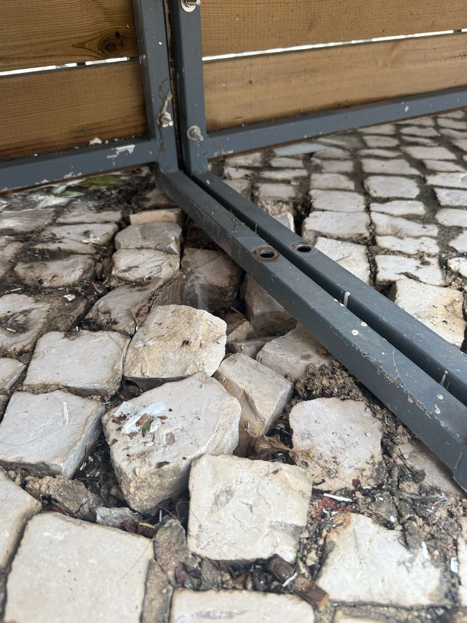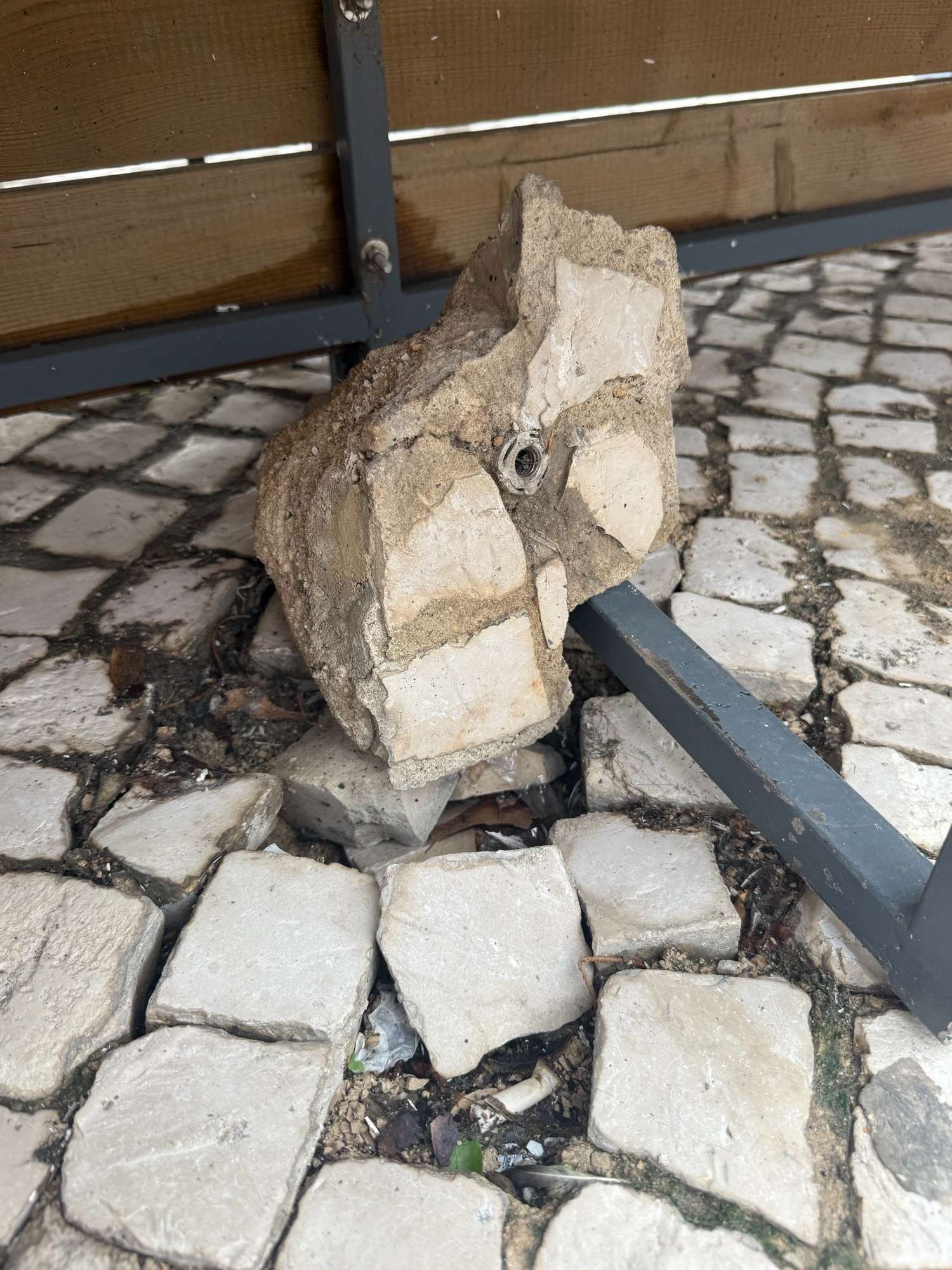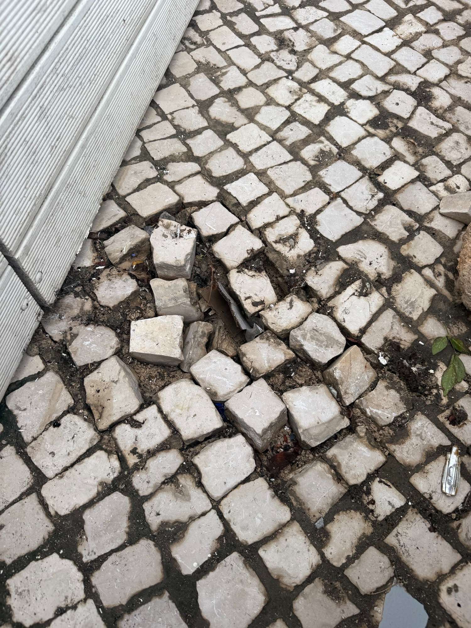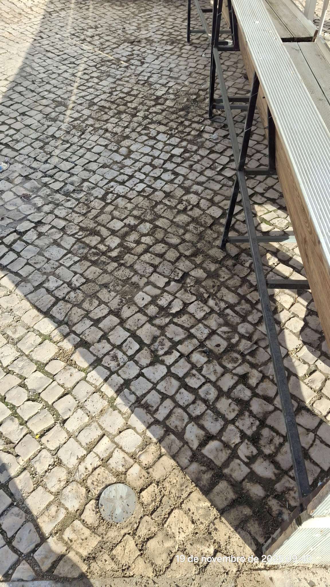 Solicito a vossa ajuda porque, após as fortes chuvas, tempestades e inundações, o pavimento em calçada da esplanada ficou fragilizado. O vento levantou os bancos do restaurante, deslocando blocos de calçada. Isto tornou a situação perigosa, uma vez que os bancos já não estão fixos ao solo. Agradeço a sua pronta intervenção para nos ajudar a trabalhar ao ar livre assim que as tempestades cessarem. Informação adicional - GO 12036 Ana Dionísio
